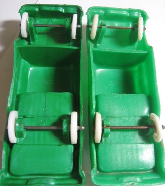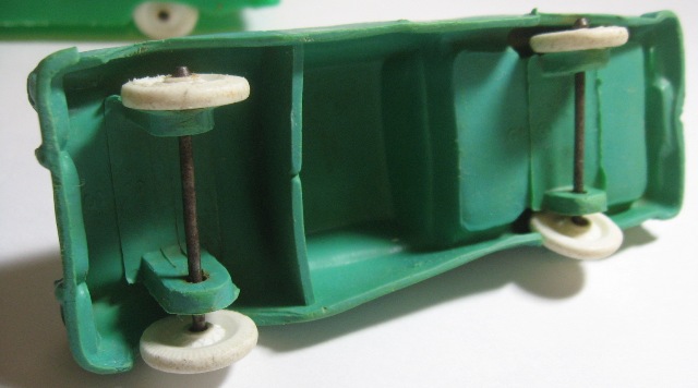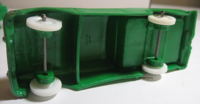 | Green | hard Plastic; white snap-on wheels | #5 base compared with base #5 above | . | late 60s? | Late model with change of materials. | |||