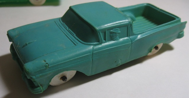 | . | 1/58 | White & gold; gold bed | #10; white wall tires, silver engine chrome air cleaner; black 3 blade fan; white wall tires; gold bumpers; chrome grill and hub caps | lite grey interior & steering wheel;