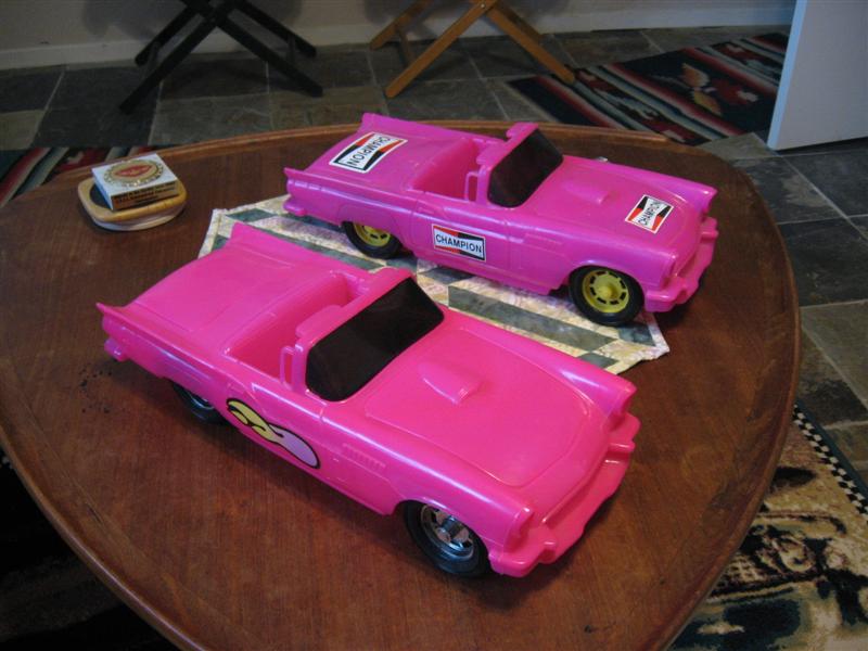 Champion Spark Plug Fashion Doll Car | 17" | Plastic convertible in hot pink with yellow wheels | |