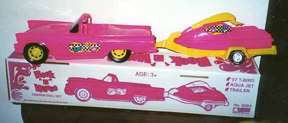 | 1992 | Fashion Doll Fun Set - Rock 'n' Waves #8095 | 17" | Plastic convertible with "aqua jet" & trailer; Hot pink; yellow wheels ; dark smoke windows | ||