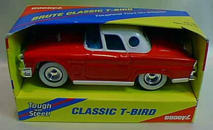 | Buddy L / Japan | 1981 | . | T-Bird #458G | 5" | 1981 ©; Red tin w/ white plastic porthole hardtop & chassis; chrome bumpers & set-in cont'l kit. This was the first model out. |