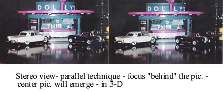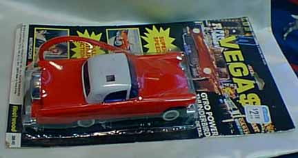 1:48 | red with white porthole top; whitewall tires; Set includes mechanical Mel's diner with carhops and black 57 Chevy plus lights(LV) |