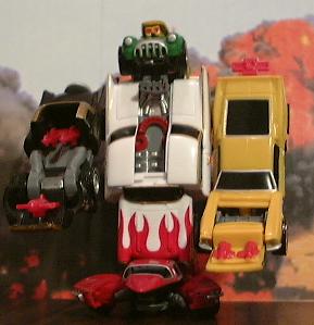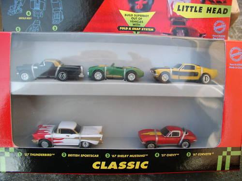 | AutoTech / China | 1999 | Transformer #11D | 1/70 | Plastic; Black with Gold Top; opens to reveal "red weapons" - part of transformer called "Little Head"; comes in set with 4 other classic cars that transform to build "Little Head"; Old San Francisco Toy Company | |