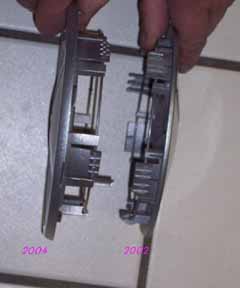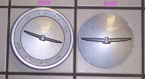| The 2004/2005 hubcap is larger than the 2002/2003. Though the snap on ring wire appears to be the same diameter, the positioning & hold on clips would have to be cut off on the 04 hub in order to slip on the 02 wheel thus losing it's holding ability to the wheel. The wire ring is placed much closer to the plastic on the 02 hub and would not be able to snap into the built in snap ring on the 04 wheel. conclusion - they are not interchangable. | |||||||||||