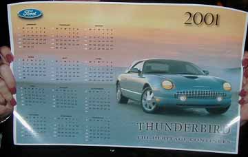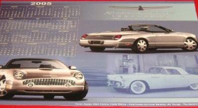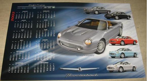 | . | Poster Calendar | 2002 | 2003 Calendar with all the stock color tbirds for 2003 plus Supercharged concept tbird - Ford published. | |
