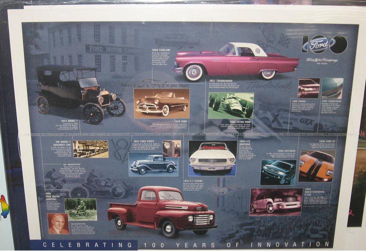 | . | Timeline Poster | 2003 | Ford Timeline of cars - 100th anniversary poster for dealer display; includes aqua 55 t-bird; and T-bird blue 02 along with many other Ford vehicles. | |