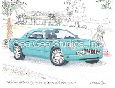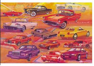 "Thunderbird" Art print by George Bartell to commemorate the Thunderbird thru the years. For Ford Motor Company. Was available thru the FordCollection.com | |