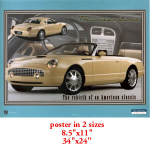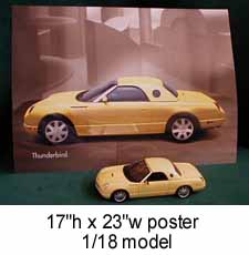 | . | Poster | 2001 | 17in.x24in. - 2002 yellow tbird; on heavy glossy photo quality paper; glossy on both sides; Dealer's quality showroom poster | |