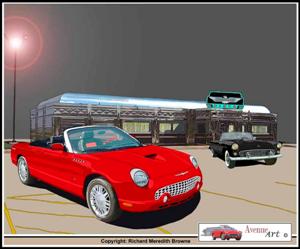 Various colors of 02/03 with a 1955 and a diner in the background - by Richard Browne - AVE-ART store on ebay.8 1/2"x11", 11"x17", 17"x22" - limited | |