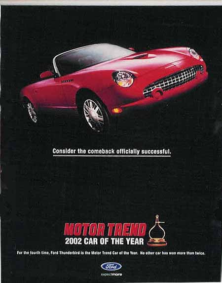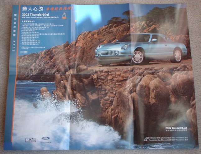| .. | Show Poster - brochure | 2001 | Tri fold - opens to large black 2002 Thunderbird. other side has info and red 2002 Thunderbird | |