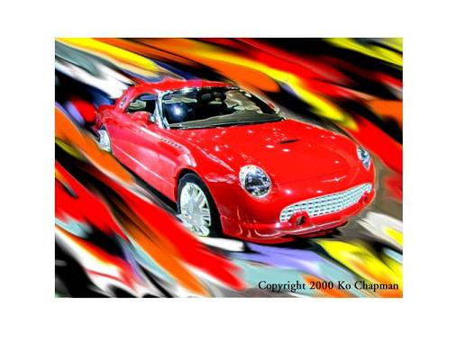 by Ko Chapman, multi car print including red concept Thunderbird |