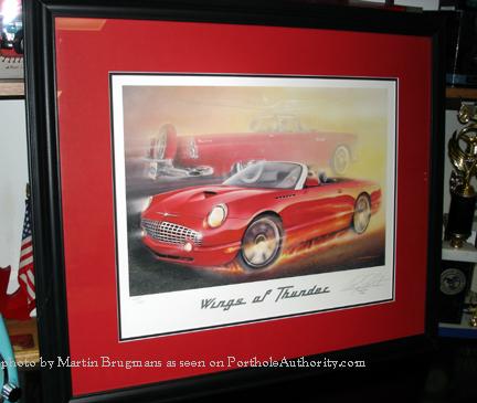 Red Thunderbird in Porthole frame, black background - Another exclusive from Ford of Canada, signed by artist Mark Conforzi, signed & nunbered - limited to 150 | |
