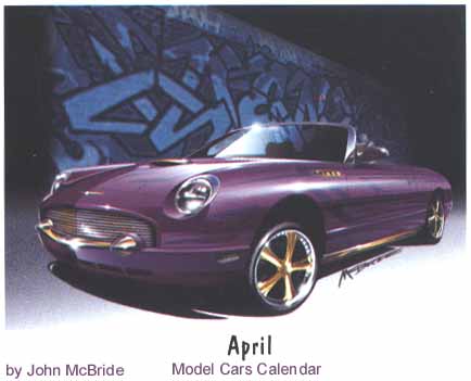 2003 Model Cars Magazine Calendar - April Page has artwork by John McBride of new t-bird | ||||||||||||