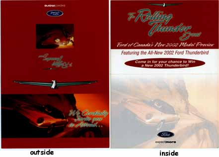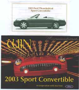 | . | 2003 | Brochure | Personalized 2003 Thunderbird brochure from Ford's Thunderbird website - was available for the 03 model year - wass mailed to you with your name on several different pages. See below for a new 04 personalized brochure. | ||||||||||||