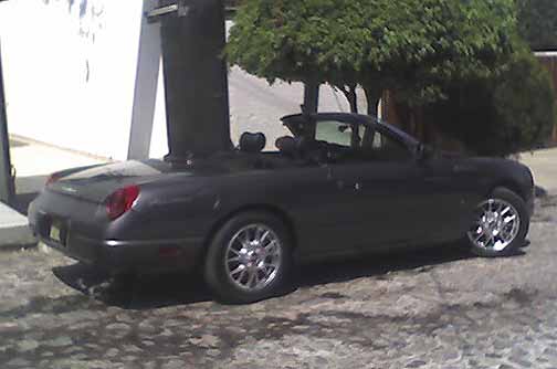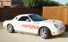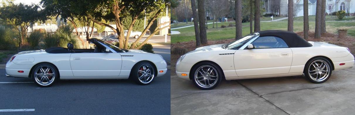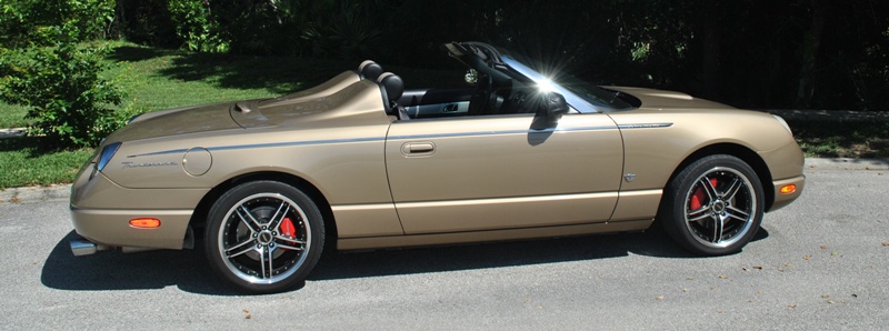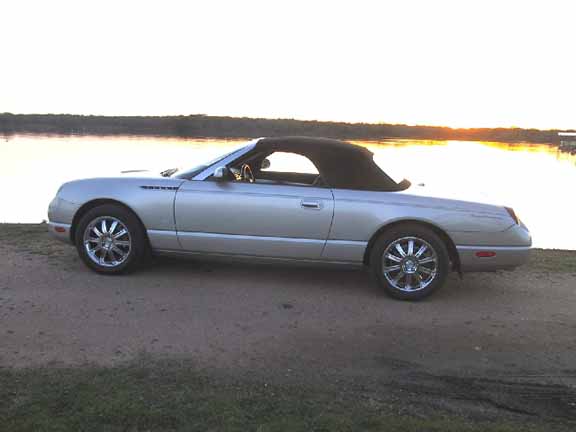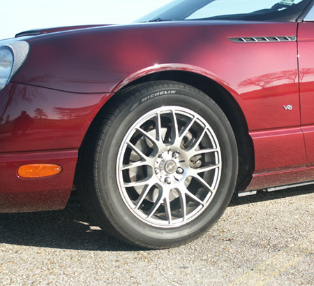 2004 t-bird Platinum Silver, 17x7.5 Fittipaldi Fin with stock 235/50R x 17 Michelin. |