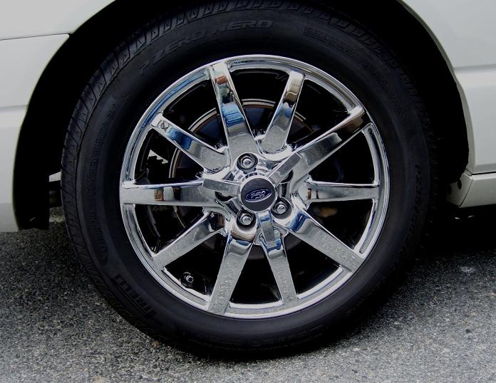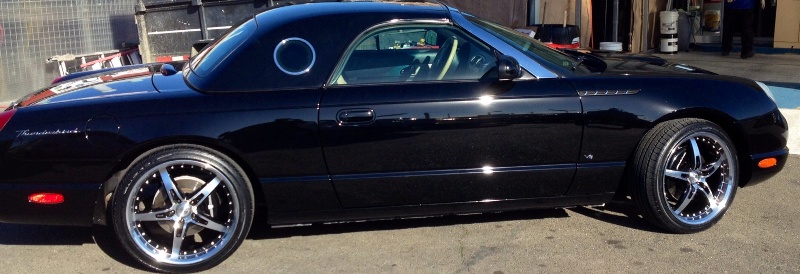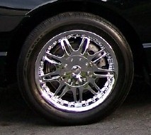 These are the wheels off of Classic Design Concept's Thunderbird, now on the rare 05 color Inca Gold. Chrome LS E wheels 5 lug x 4.25 or 108mm with Michelin Pilot Sports 265/40ZR-18 tires |