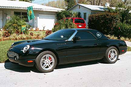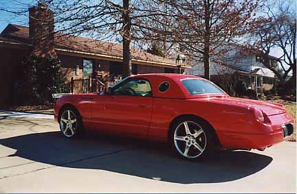 black 2003 w/custom 19" wheels, eibach springs, Borla exhaust plus drilled & slotted rotors and hi-gloss red calipers w/Thunderbird name on them | . |